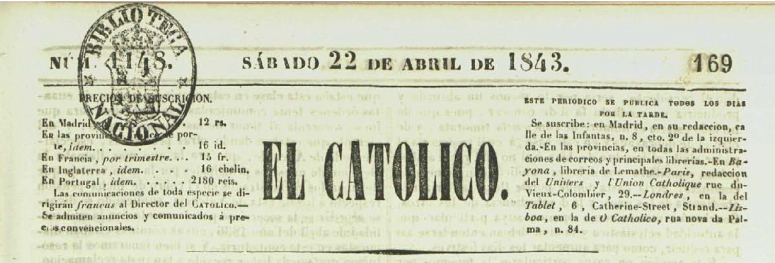 Todos estos recuerdos se me han agolpado al encontrarme buceando en la Hemeroteca Digital Nacional con esta noticia que publicaba “el Católico” en su número del 22 de abril de 1843 (tal día como hoy) relacionada con el descanso dominical y con nuestro pueblo. Soy católico; creo en los milagros, pues es consecuencia de mi creencia en el poder infinito de Dios, pero creo que los milagros son rarísimos y no creo que Dios vaya soltando por ahí milagritos, al igual que hiciera Pulgarcito con sus migas de pan por el bosque. Por todo ello me limito a copiar literalmente, y respetando la grafía original, lo que se decía en la citada publicación: