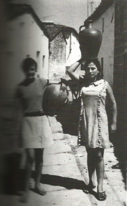 Y mi madre me compraba los cántaros “mellaos“ aquí en ca María Calera que era la que vendía los cántaros y los botijos y eso, porque como los traías a la cabeza, hasta que te enseñabas. Pues yo ya venía luego mu garbosa. Buf, me ponía yo con mi cántaro y otro traía al cuadril, y to más bien que na. Y eso es lo que era con el agua. Muchas penas que se han pasao porque como no lo había…