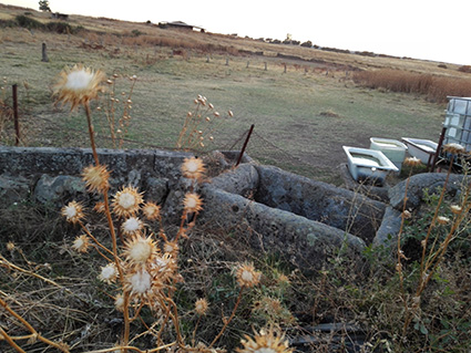 POZO LA INDIA– Está situado cerca del estanque del mismo nombre y a orillas del camino que va Miramontes De brocal rectangular de 1,80 X 1,30. No eran potable las aguas por lo que se usaba a parte de abrevadero para el ganado en las dos pilas que lleva para lavar. Presenta la peculiaridad que está en la linde de una propiedad privada con el camino público. ¿Se haría a medias con el Ayuntamiento y el dueño del prado en cuya linde está?