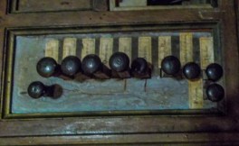 • A la izquierda del teclado: flautado, octava, docena, quincena decinovena, llano III, cimbala IV y trompeta real.