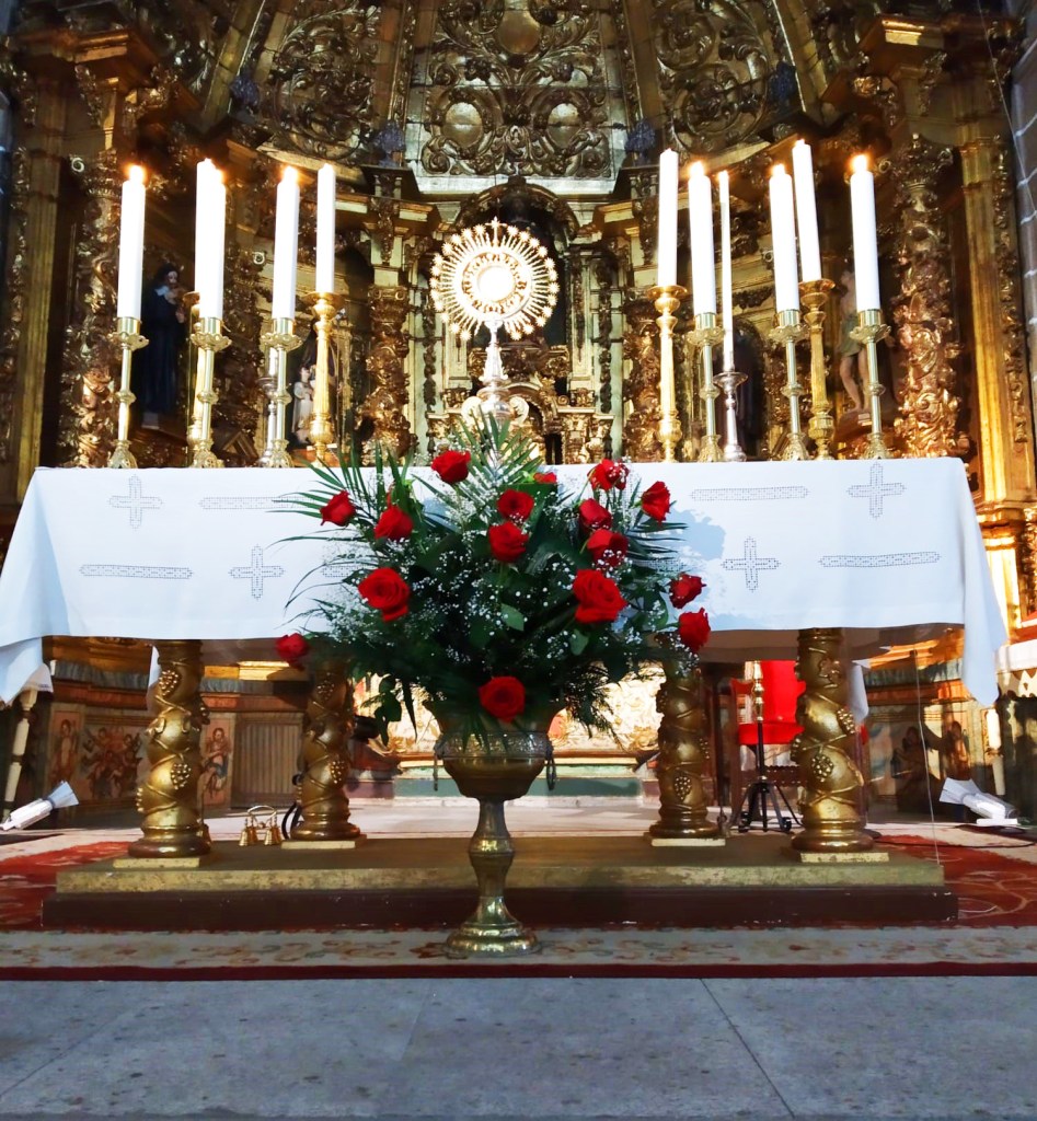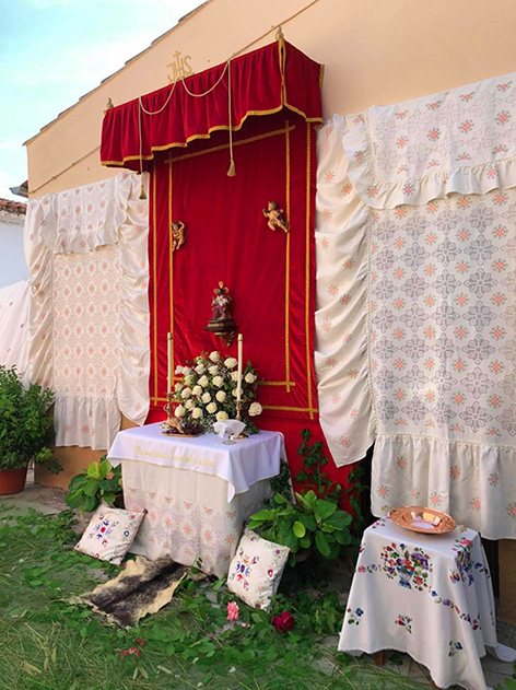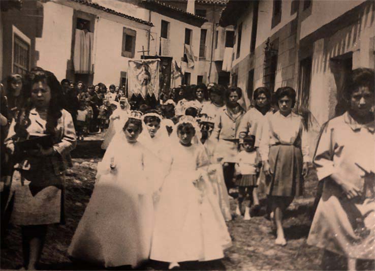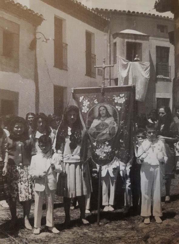 Había un día al año en el que la calle en la que vivo, estaba animadísima; era el día del Corpus en que la procesión pasaba por ella. Ya por la mañana el ajetreo en ella era notorio. Unos con haces de juncias esparciéndolas a lo largo y ancho de la calle, otros con brazadas de mistranzos, albahaca, hierbabuena; éste clavando alguna que otra púa para tender una cuerda en la que colgar blancas sábanas para enmarcar un altar donde descansar la Custodia; aquel ayudando a las mujeres a trasladar macetas para el mismo fin.