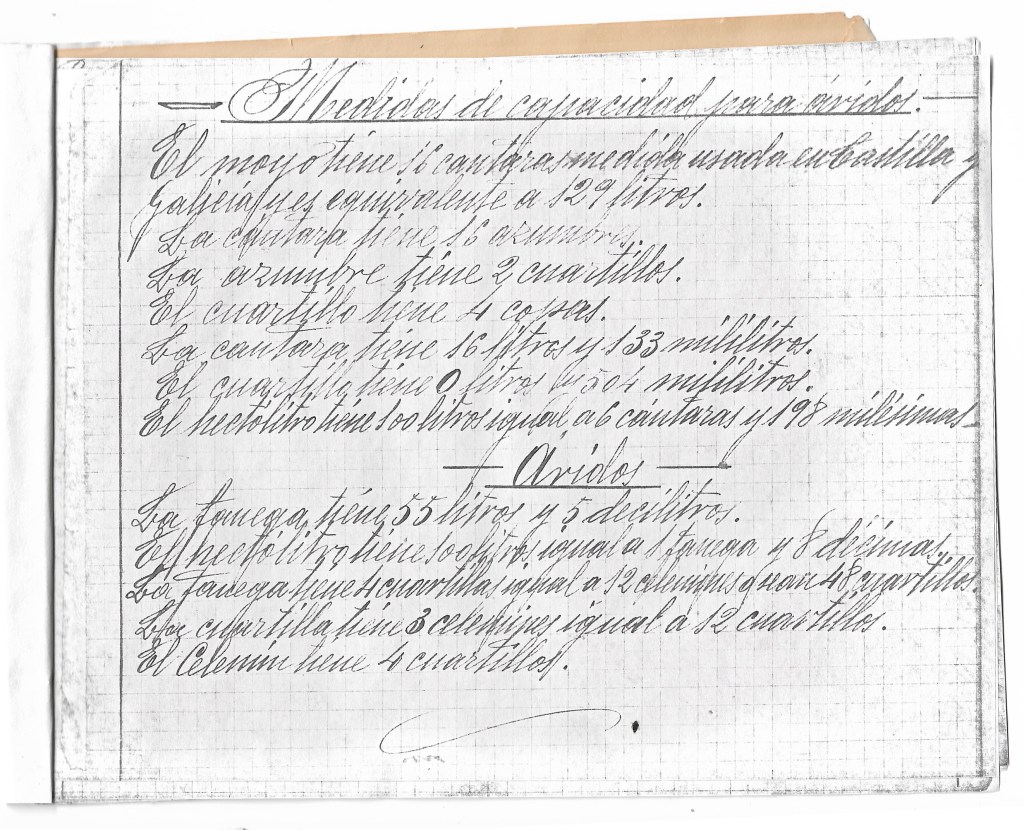 Otras medidas que siguieron usando los peraleos: fueron la cuartilla, el celemín y la fanega; todas medidas de capacidad empleadas para áridos (llamaban áridos a los cereales).