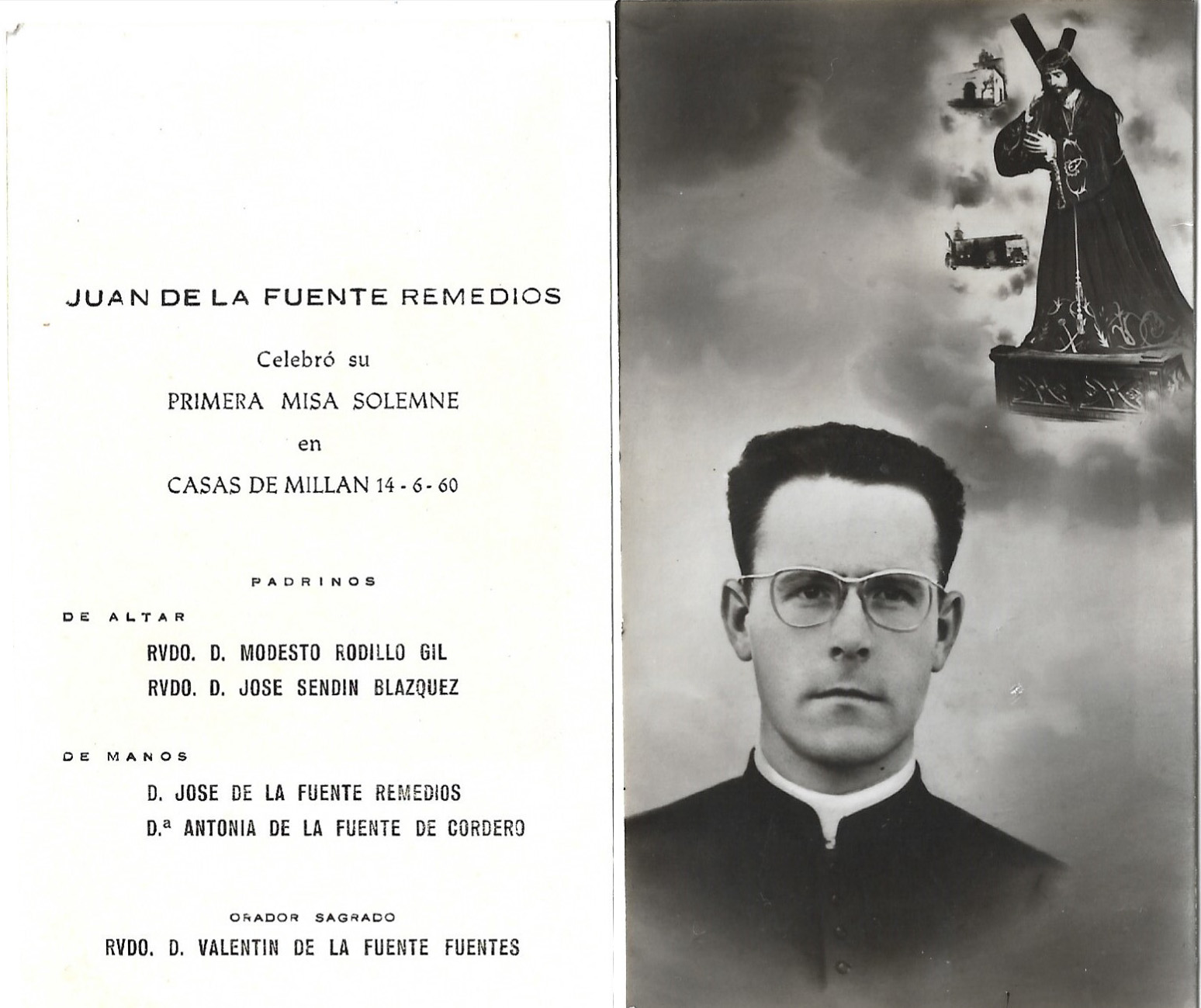 Una vez fallecido, entre sus cosas se encontró un diario. En ese diario hay una línea que transcribo literalmente: “Aquel profundo respeto que yo sentía cuando era niño hacia un sacerdote” y este sacerdote no puede ser otro que D. Juan. Y no es descaminado pensar que esa admiración hacia un sacerdote fue el origen de su vocación.