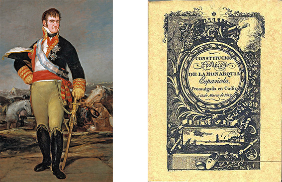 Con el levantamiento de Riego en Cabeza de San Juan el 1º de enero de 1820 da inicio lo que conocemos como El Trienio Constitucional. Los sublevados obligan a Fernando VII a prestar juramento a la Constitución de 1812 que había declarado nula y sin ningún efecto el 4 de mayo de 1814. El Rey, amedrentado, presta juramento a la Constitución ante una representación del Ayuntamiento de Madrid.